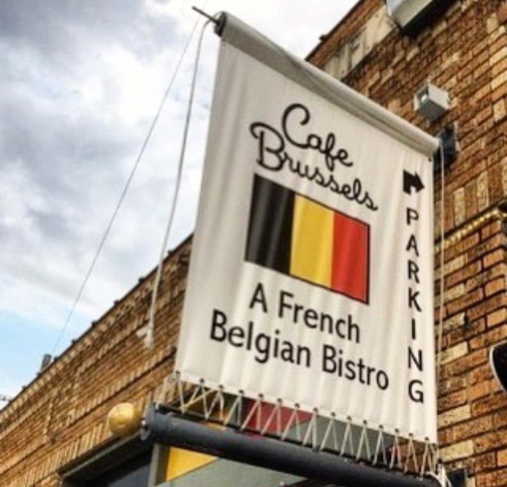 Cafe Brussels is a small restaurant on the corner of Houston Ave & Crocket St. Even though the outdoor seating faces the Avenue, it’s our favorite spot to sit and eat their yummy Belgian fries & mayo.