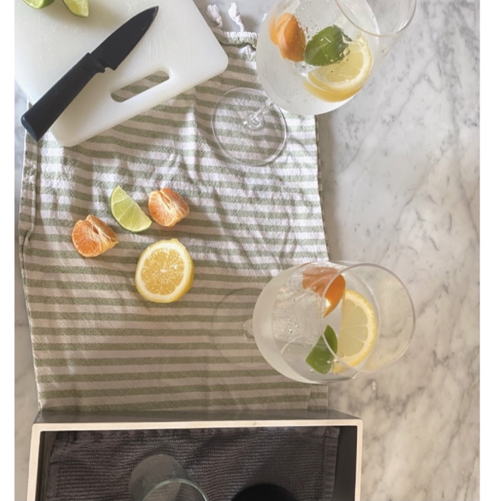 Now that you’ve got your ice, tonic & gin, go ahead and give it a stir. Now the tasting bit comes in. Add in some of the squeezed juices from each of the fruits: lime, lemon and mandarin; see what you think of the flavor and feel free to add in more as you like.