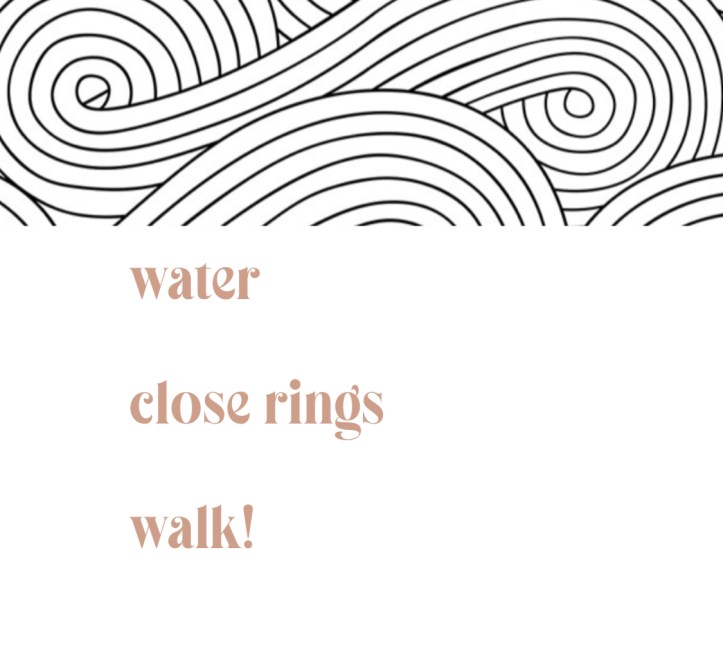 I think…based on the last couple weeks of upping my water intake, that the 70oz per day may be the most difficult. The rings should be ok..and walking a mile, piece of cake…but it does me SO much good to make sure I get a walk in every single day. Now, this will require me to get up a little earlier since it’s starting to warm up, but if I set an alarm every 5 minutes an hour before I need to get up, I should be fine.