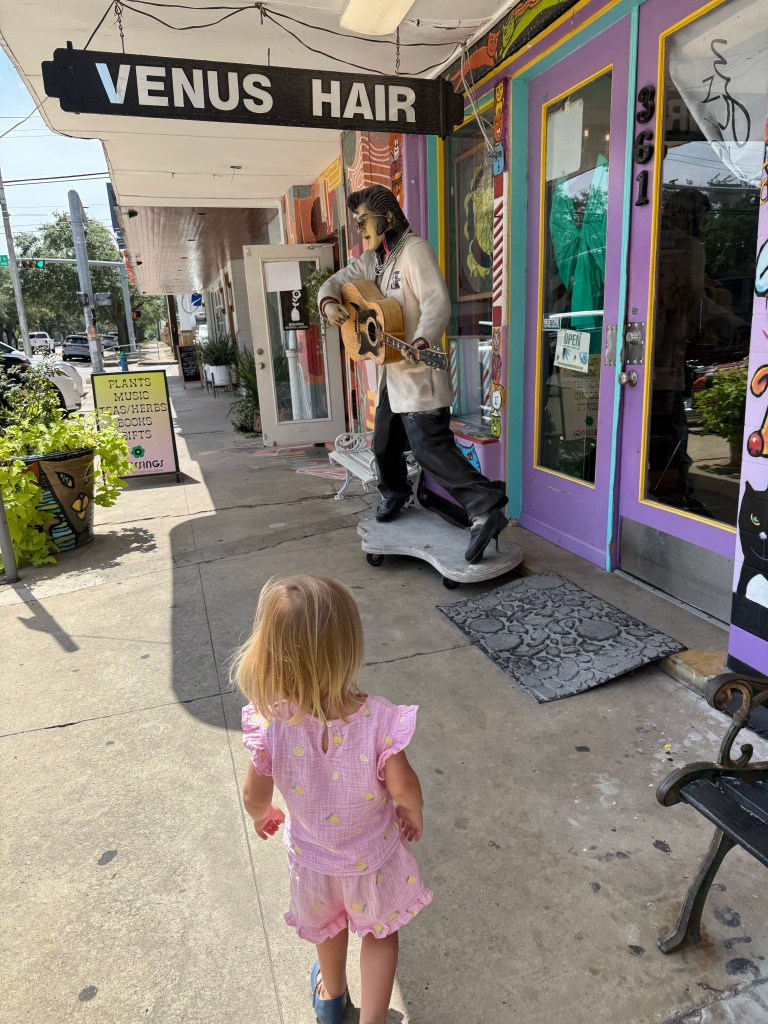 After that we walked around a bit, it had been a while for her so I doubt she remembered the funky things along the way. She really liked the Elvis statue that is a permanent fixture in front of the Venus Hair salon!